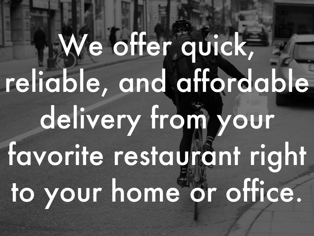 We offer quick, reliable, and affordable delivery from your favorite restaurant right to your home or office.