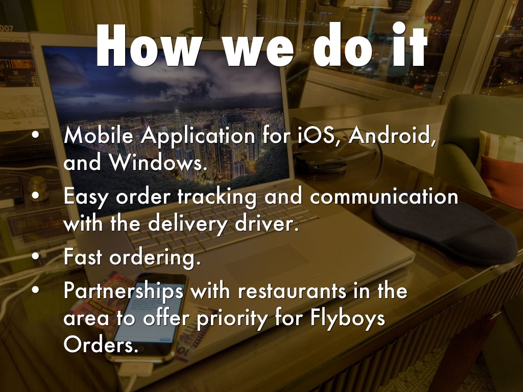 Partnerships with restaurants in the area to offer priority for Flyboys Orders.