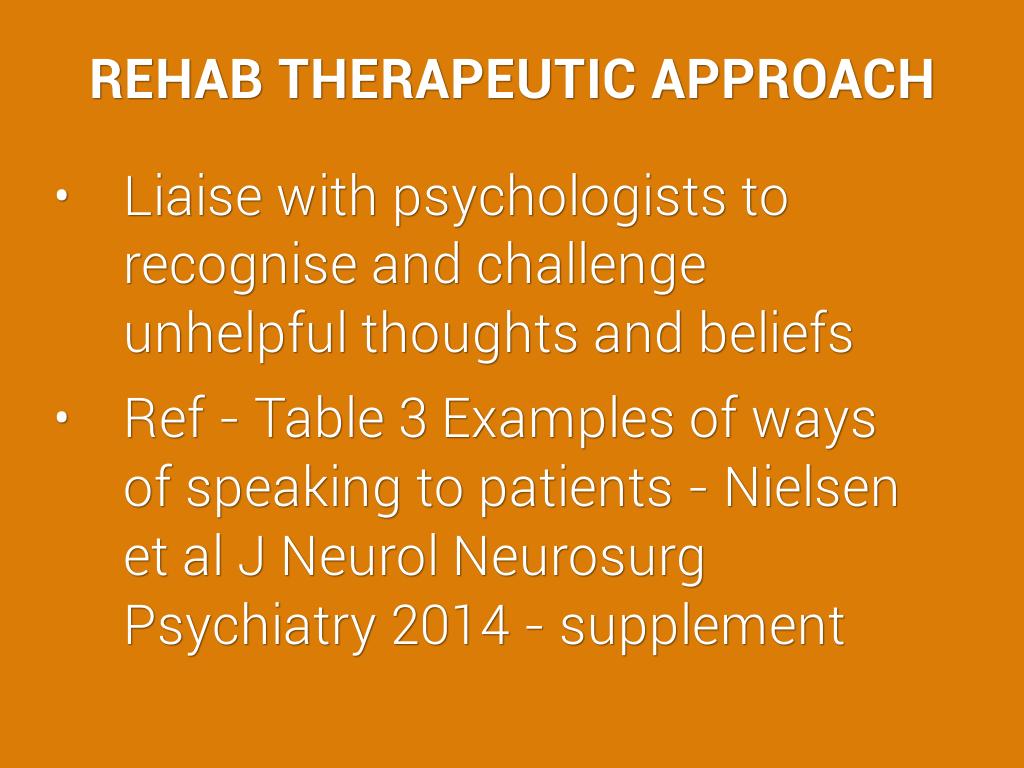 Patient says they cannot do a rehab task - Response - progress can be slow - every task you do is helping your brain and nerves to work normally- best to keep working with your therapists