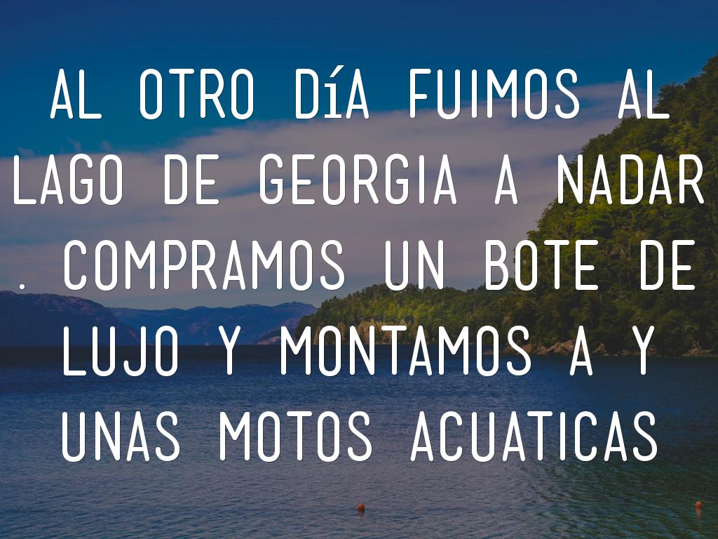 al otro día fuimos al lago de Georgia a nadar . compramos un bote de lujo y montamos a y unas motos acuaticas