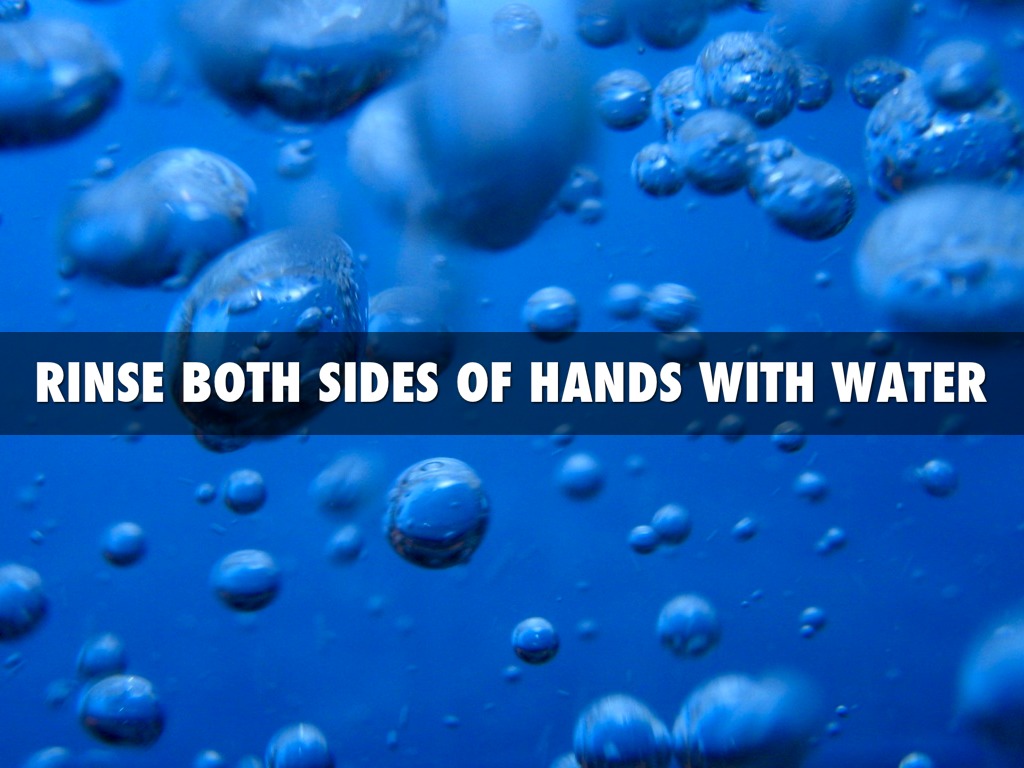 RINSE BOTH SIDES OF HANDS WITH WATER