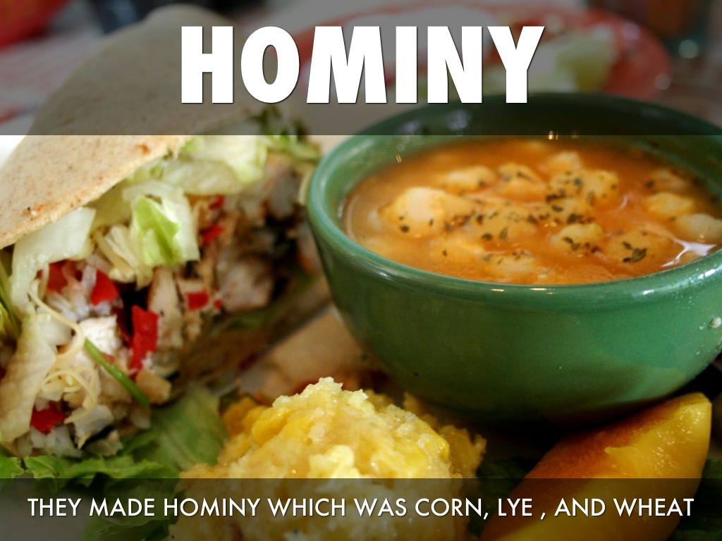 THEY MADE HOMINY WHICH WAS CORN, LYE , AND WHEAT