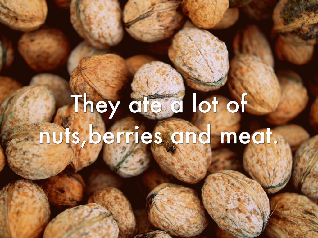 They ate a lot of nuts,berries and meat.