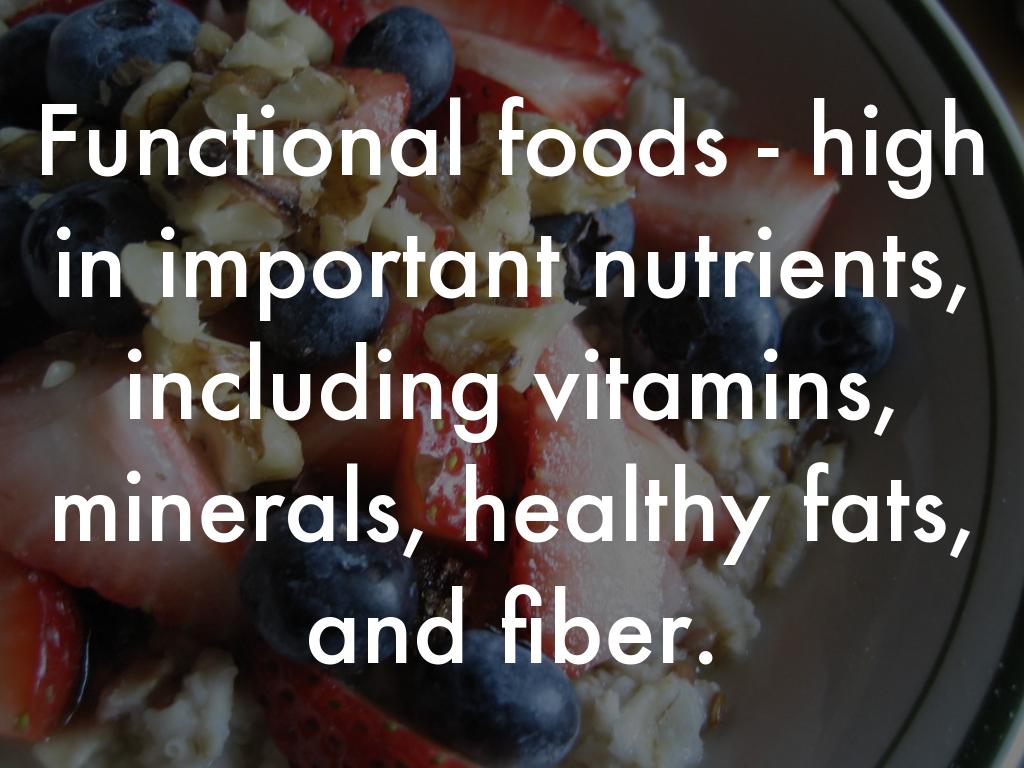 Functional foods - high in important nutrients, including vitamins, minerals, healthy fats, and fiber.