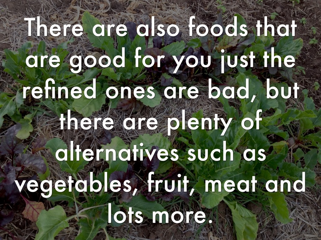 There are also foods that are good for you just the refined ones are bad, but there are plenty of alternatives such as vegetables, fruit, meat and lots more.