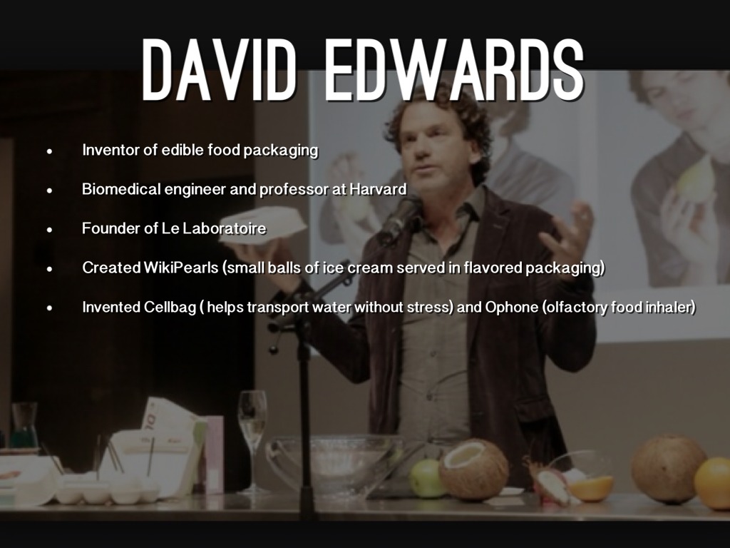 Wiki Cells - Made by David Edwards, he packages food using seeds, calcium ions, particles of chocolate, and nuts