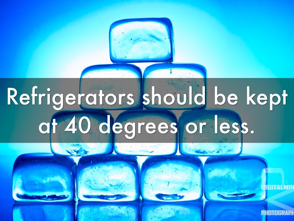 Refrigerators should be kept at 40 degrees or less.