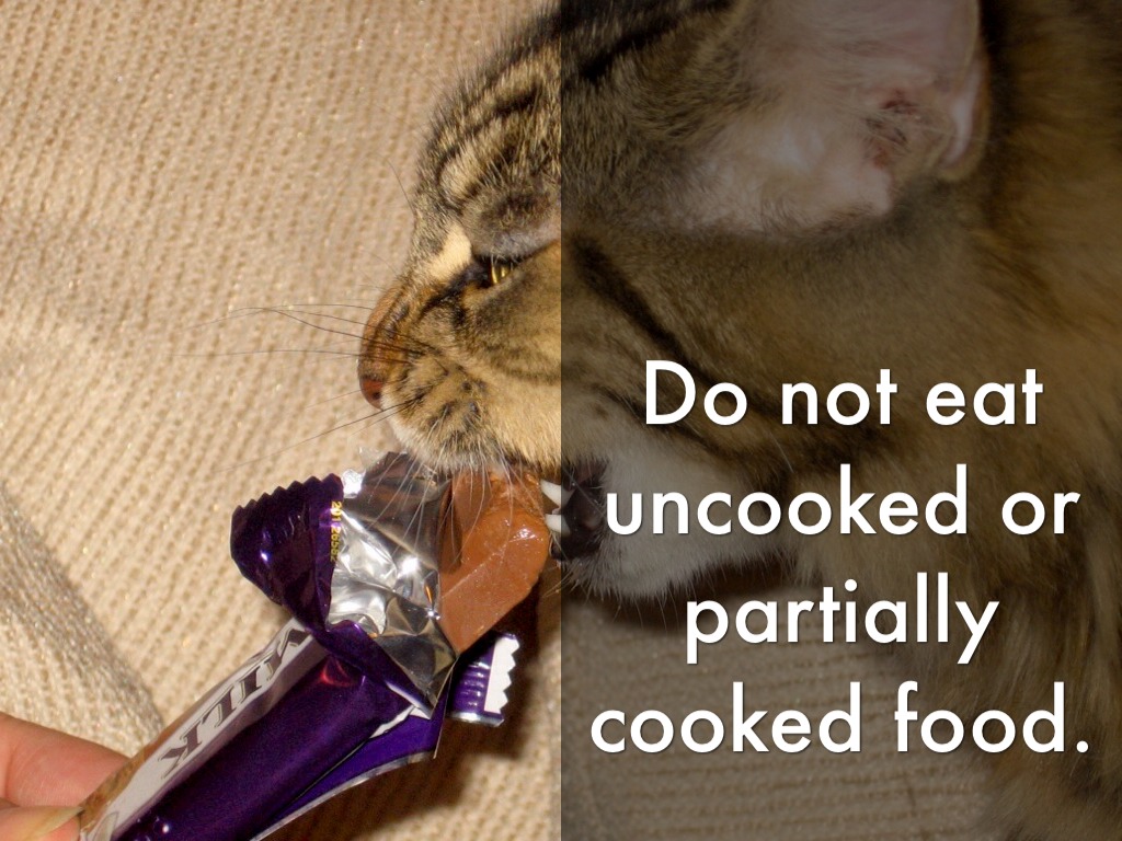 Do not eat uncooked or partially cooked food.