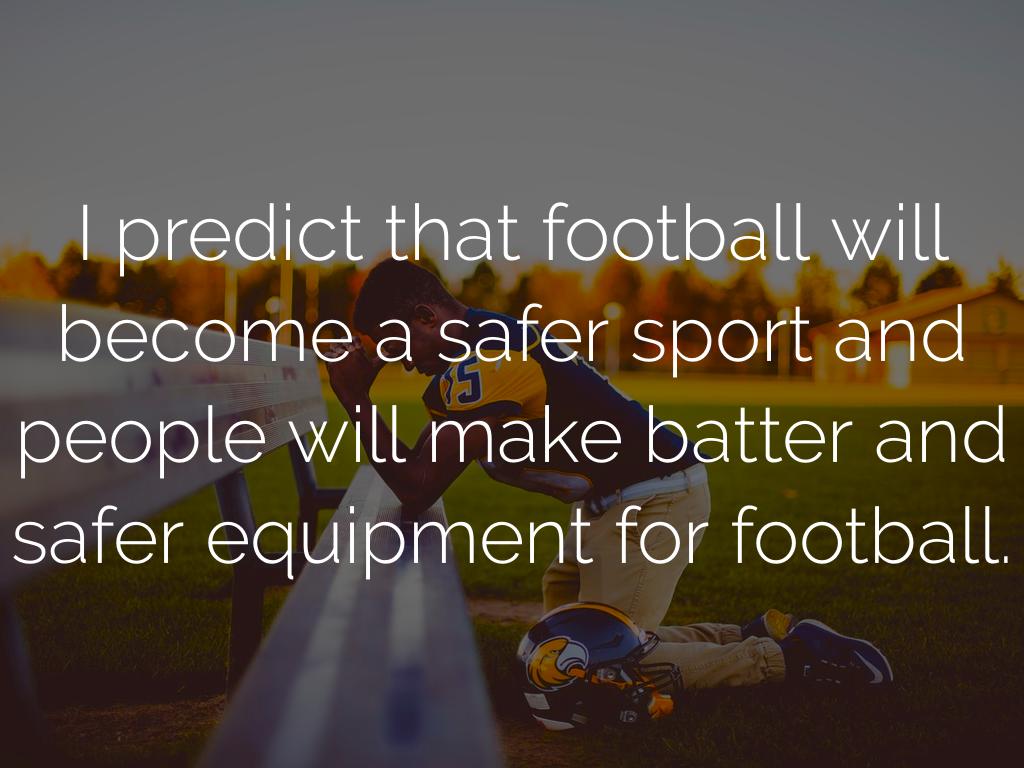 I predict that football will become a safer sport and people will make batter and safer equipment for football.
