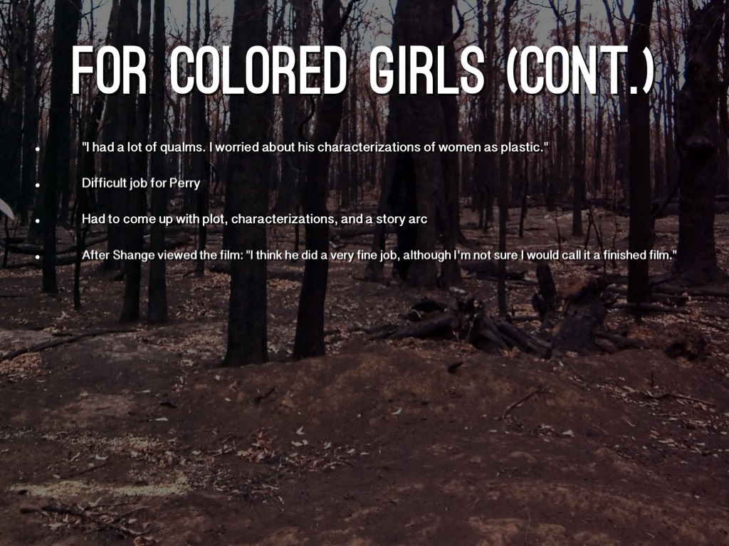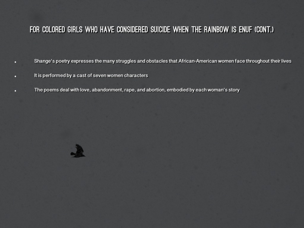 FOR COLORED GIRLS WHO HAVE CONSIDERED SUICIDE WHEN THE RAINBOW IS ENUF (CONT.)