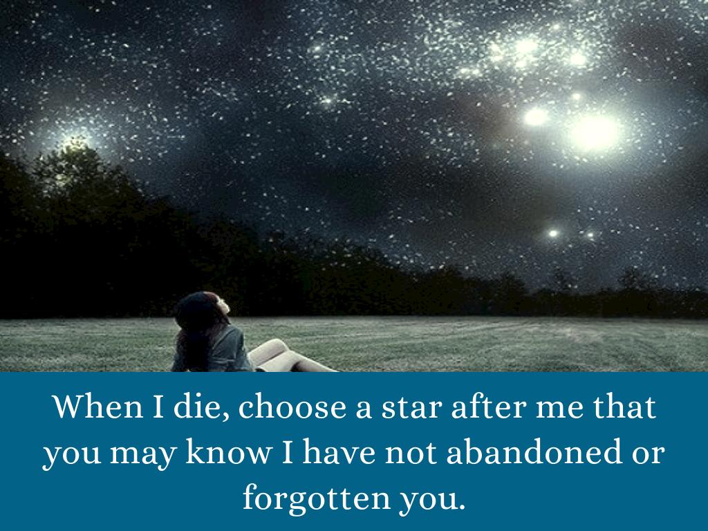 When I die, choose a star after me that you may know I have not abandoned or forgotten you.