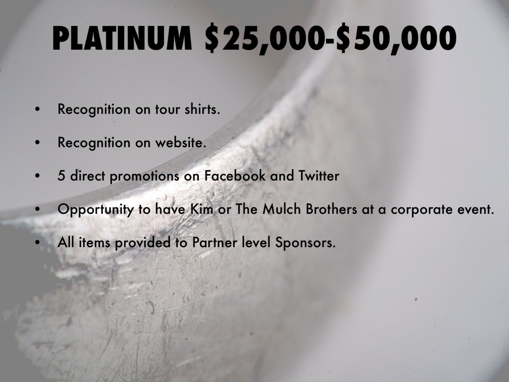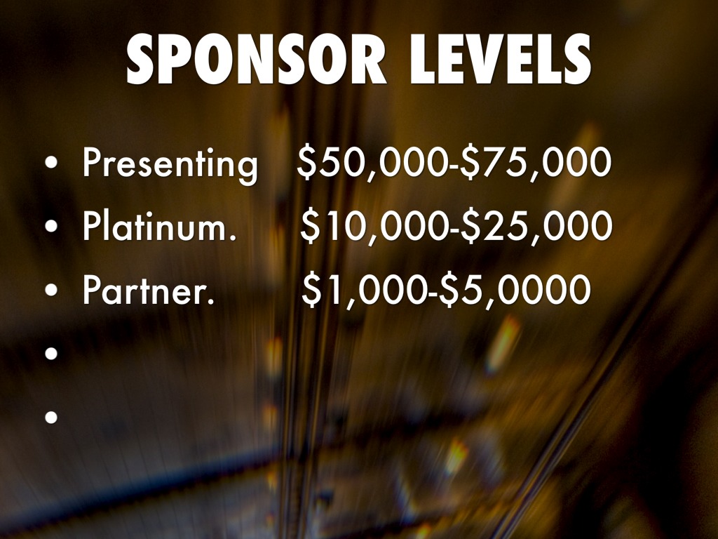 Our goal is to find the best way to leverage your Sponsorship. We will be glad to discuss many different Marketing Options. checks made out to EFG Entertainment Gr