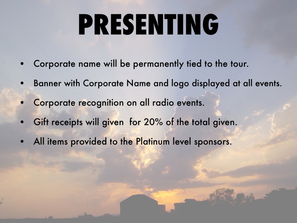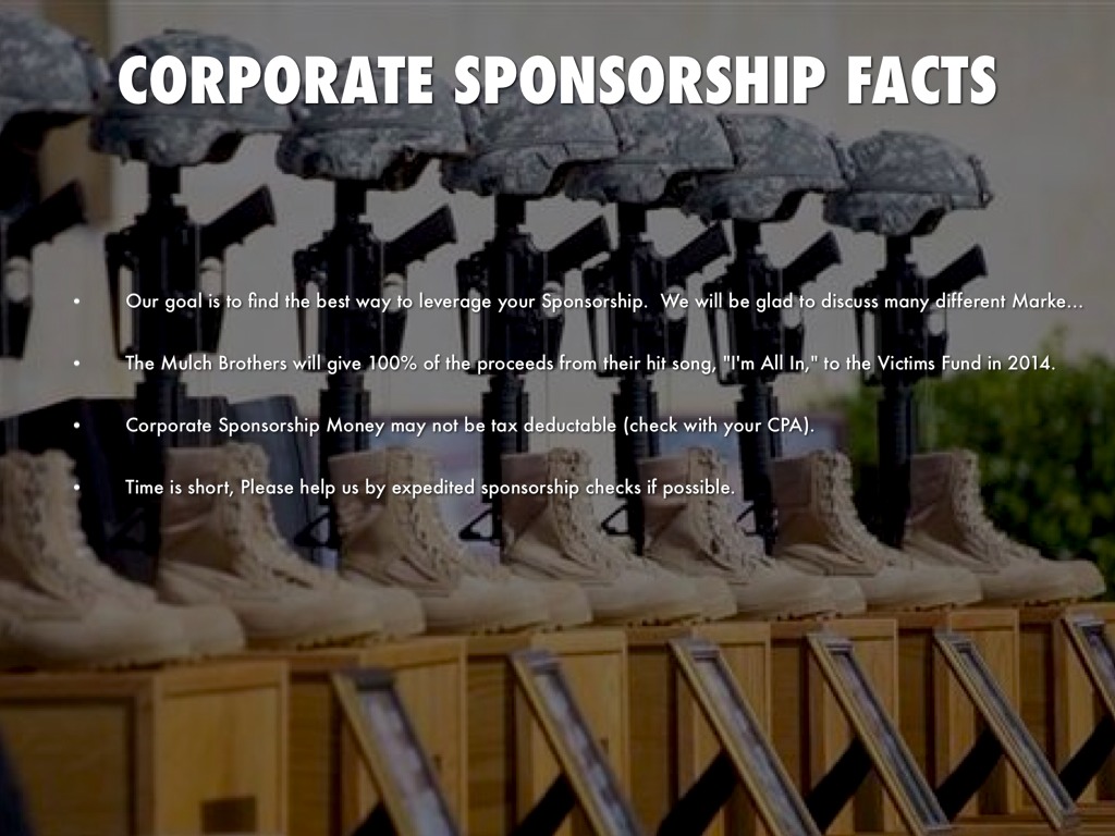 Corporate Sponsorship Money may not be tax deductable (check with your CPA).
