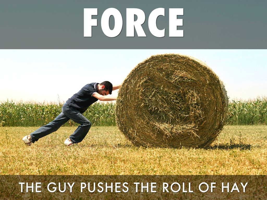 THE GUY PUSHES THE ROLL OF HAY