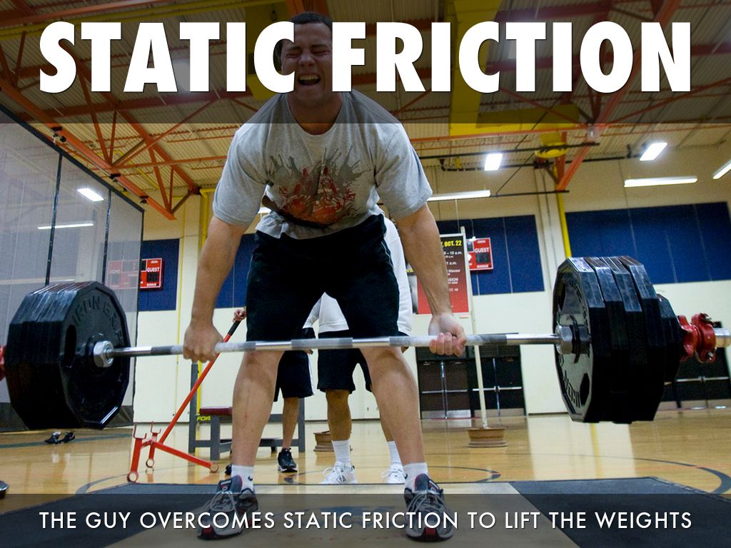THE GUY OVERCOMES STATIC FRICTION TO LIFT THE WEIGHTS