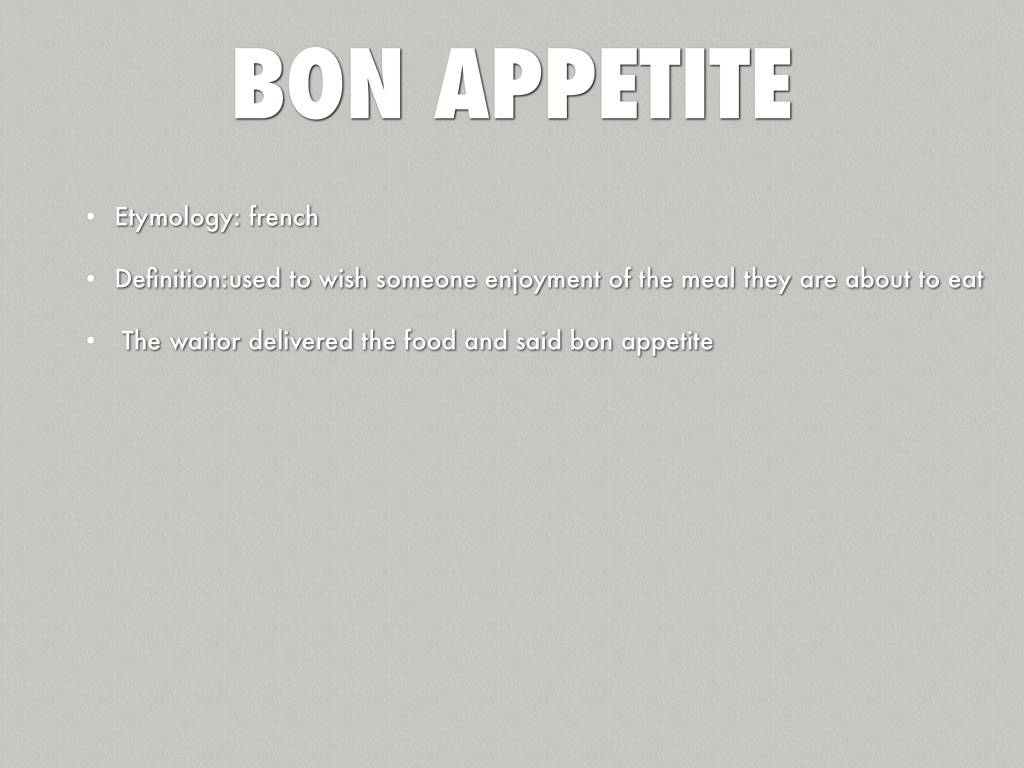 Definition:used to wish someone enjoyment of the meal they are about to eat