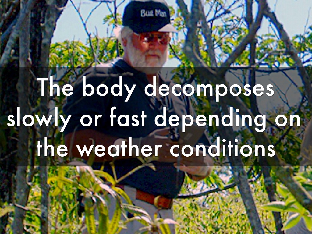 The body decomposes slowly or fast depending on the weather conditions
