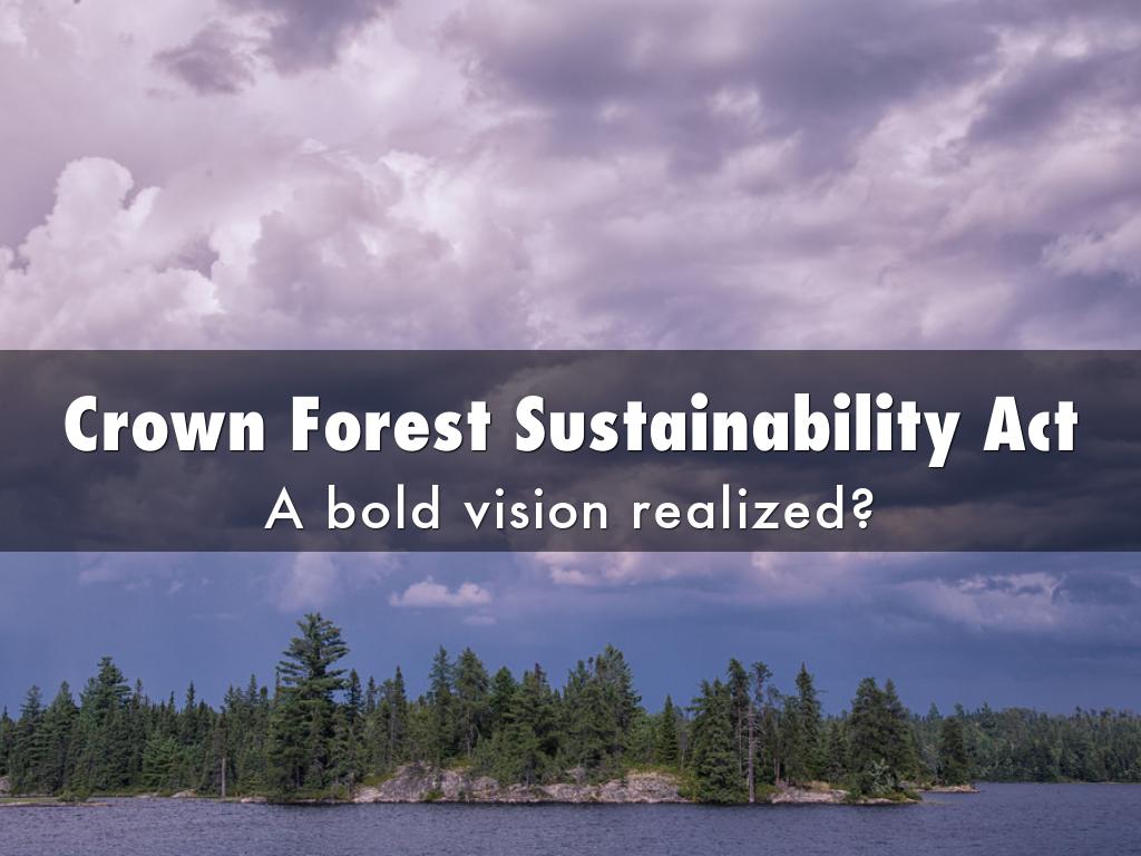s 1 purpose: to provide for the sustainability of Crown forests and, in accordance with that objective, to manage Crown forests to meet social, economic and environmental needs of present and future generations