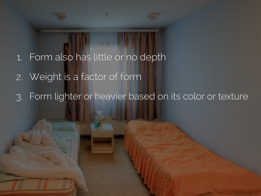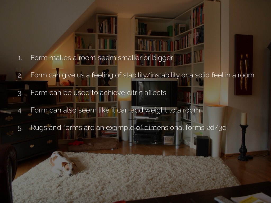 • Form can give us a feeling of stability/instability or a solid feel in a room