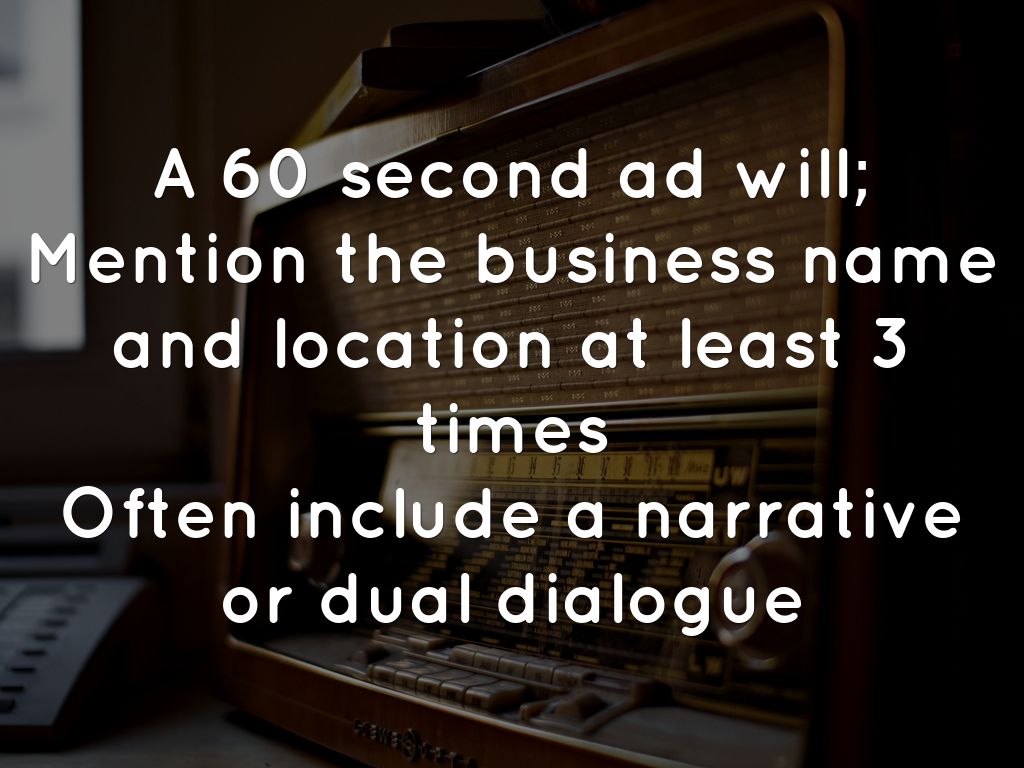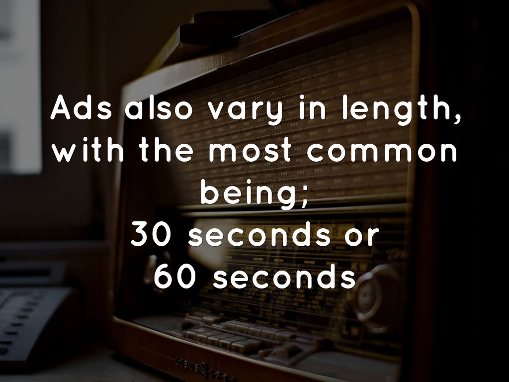We will be creating a radio ad in the form of a 30 second produced spot to promote our clothing brand.