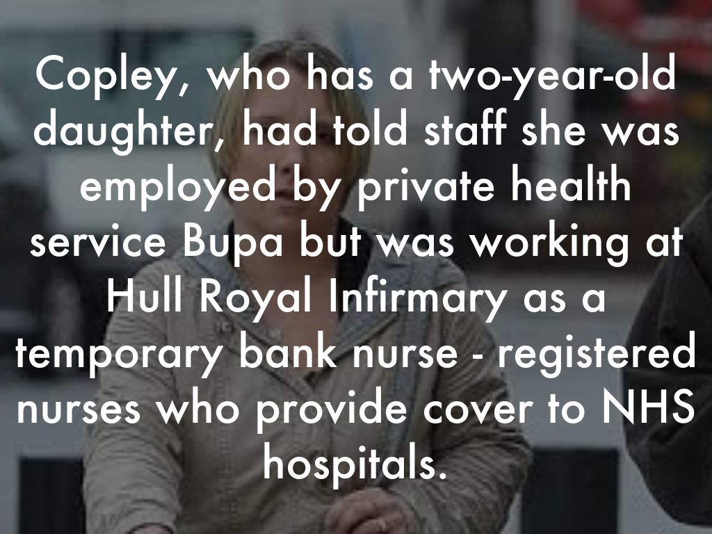 Copley, who has a two-year-old daughter, had told staff she was employed by private health service Bupa but was working at Hull Royal Infirmary as a temporary bank nurse - registered nurses who provide cover to NHS hospitals.