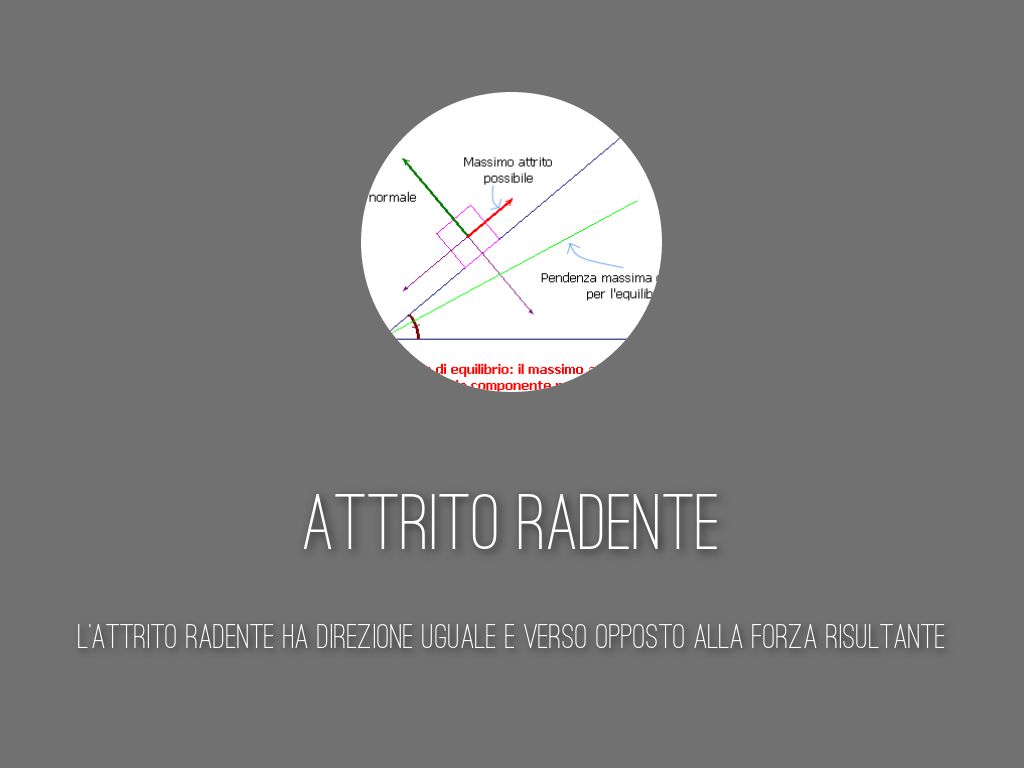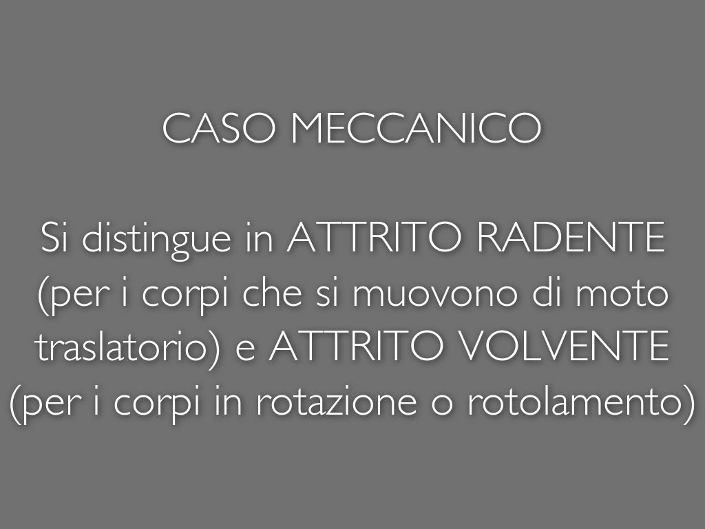 Si distingue in ATTRITO RADENTE (per i corpi che si muovono di moto traslatorio) e ATTRITO VOLVENTE (per i corpi in rotazione o rotolamento)