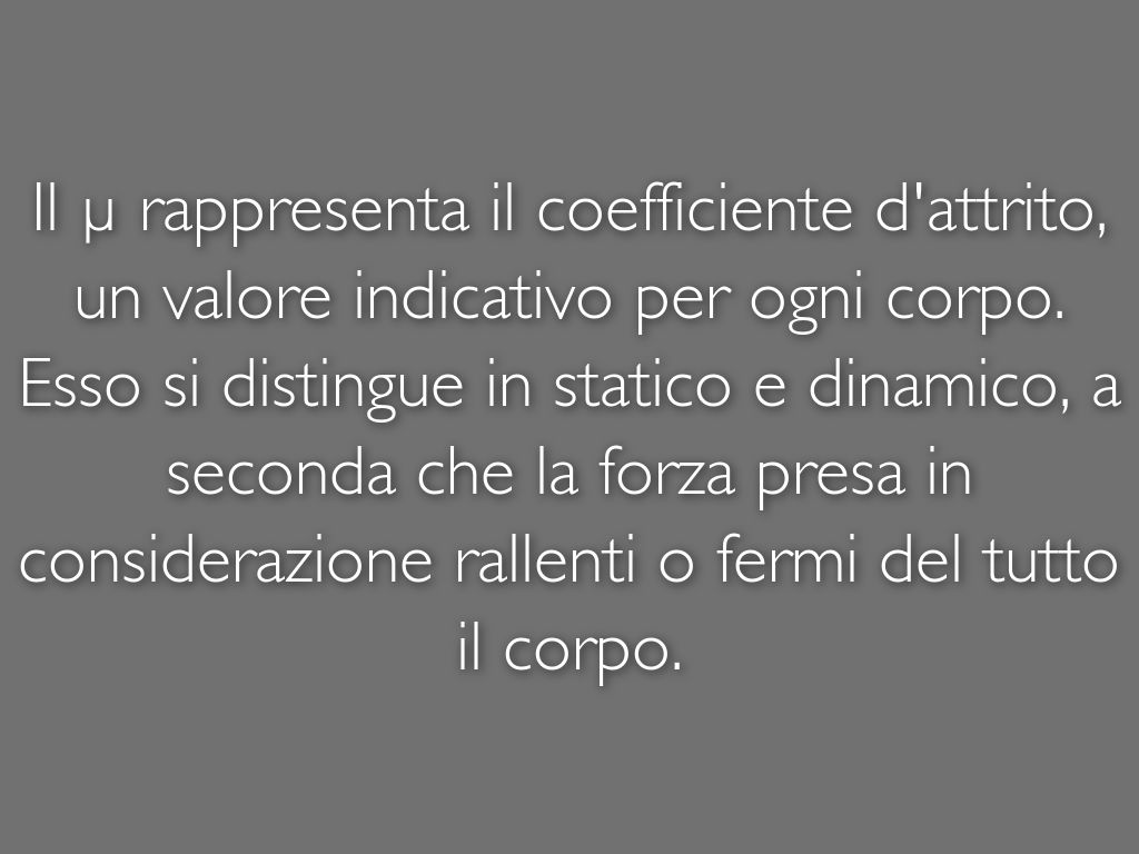 Il µ rappresenta il coefficiente d'attrito, un valore indicativo per ogni corpo. Esso si distingue in statico e dinamico, a seconda che la forza presa in considerazione rallenti o fermi del tutto il corpo.