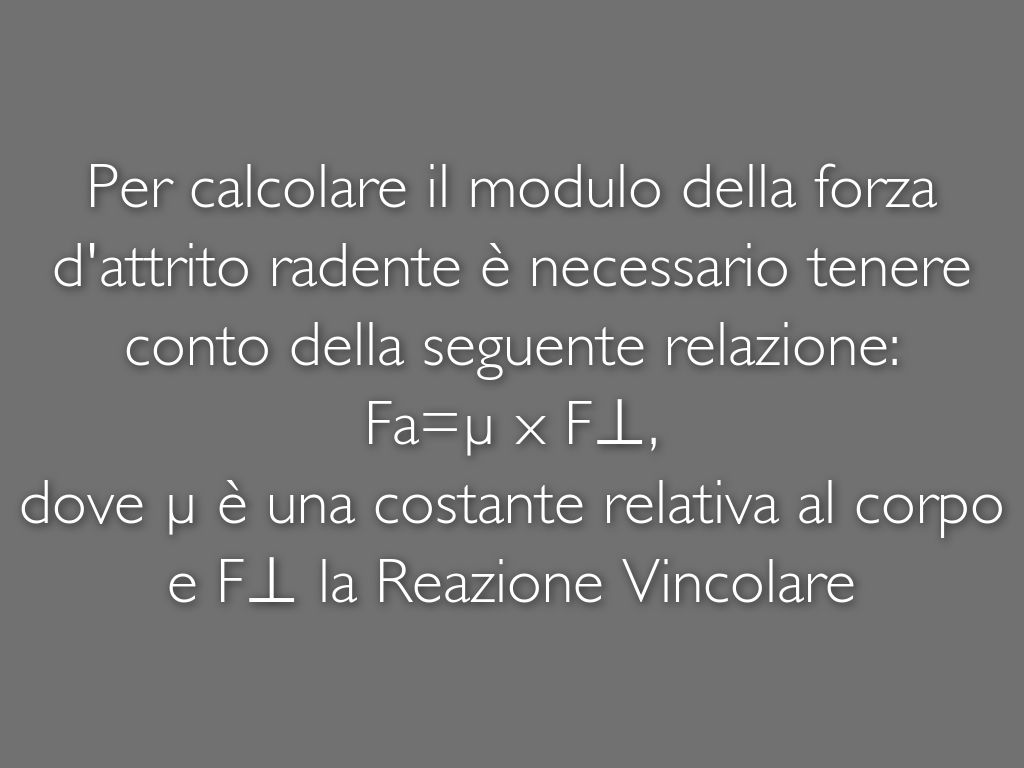 Per calcolare il modulo della forza d'attrito radente è necessario tenere conto della seguente relazione: