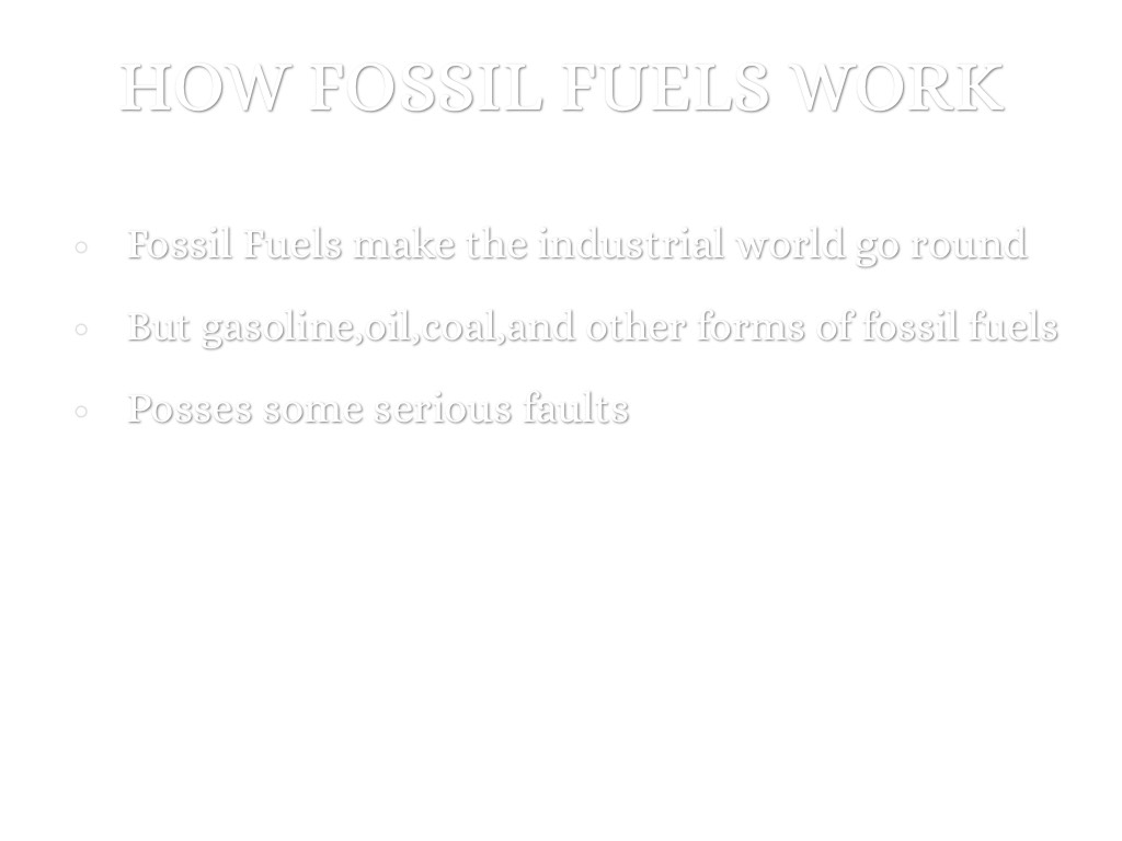 Fossil fuels, including coal, oil and natural gas, are currently the world's energy source.