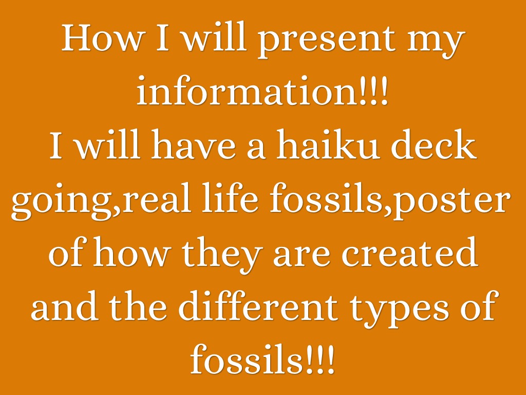 I will have a haiku deck going,real life fossils,poster of how they are created and the different types of fossils!!!
