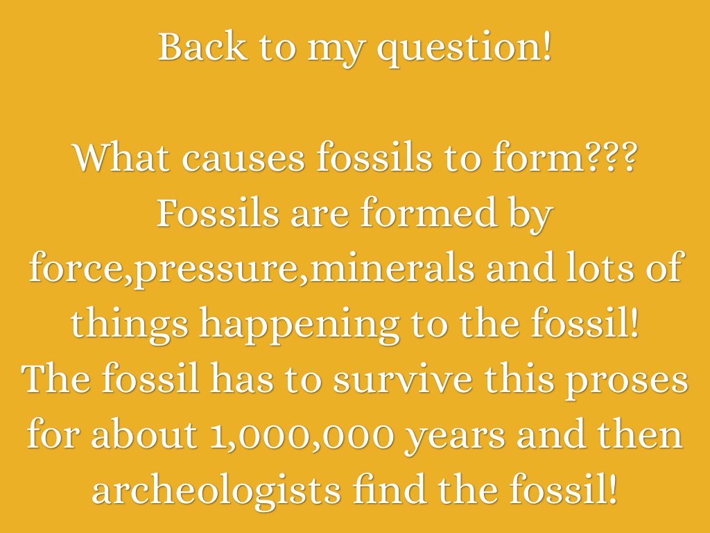 What causes fossils to form??? Fossils are formed by force,pressure,minerals and lots of things happening to the fossil!