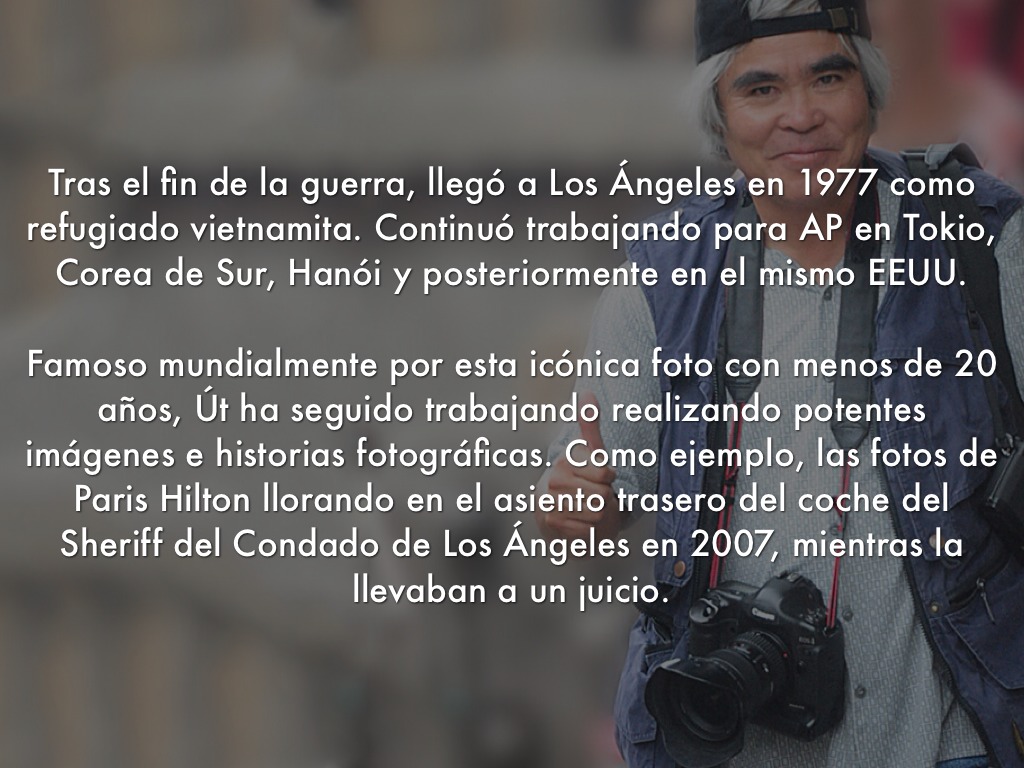 Famoso mundialmente por esta icónica foto con menos de 20 años, Út ha seguido trabajando realizando potentes imágenes e historias fotográficas. Como ejemplo, las fotos de Paris Hilton llorando en el asiento trasero del coche del Sheriff del Condado de Los Ángeles en 2007, mientras la llevaban a un juicio.