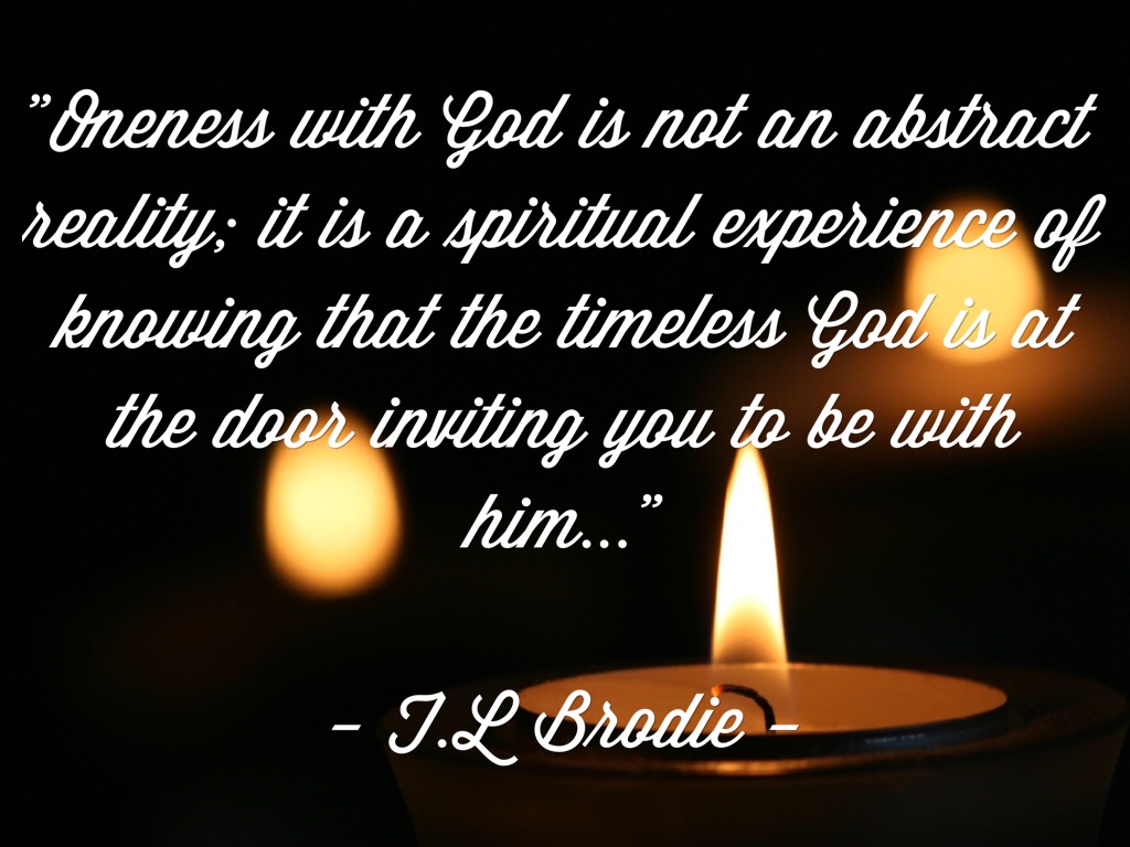 "Oneness with God is not an abstract reality; it is a spiritual experience of knowing that the timeless God is at the door inviting you to be with him..."