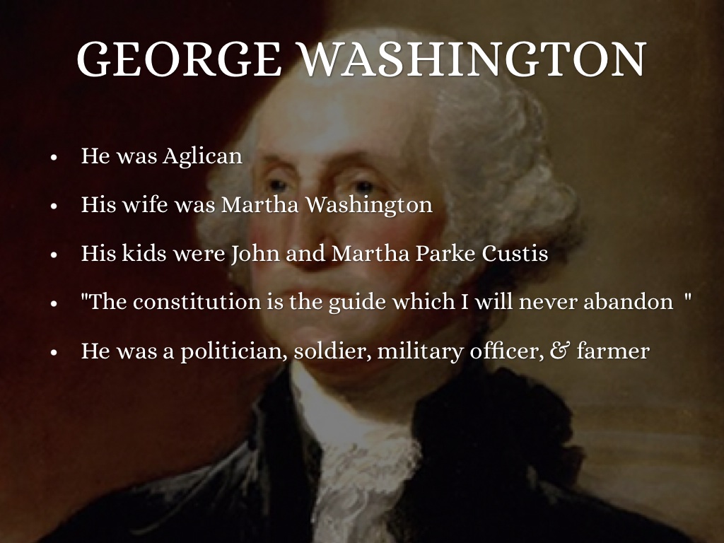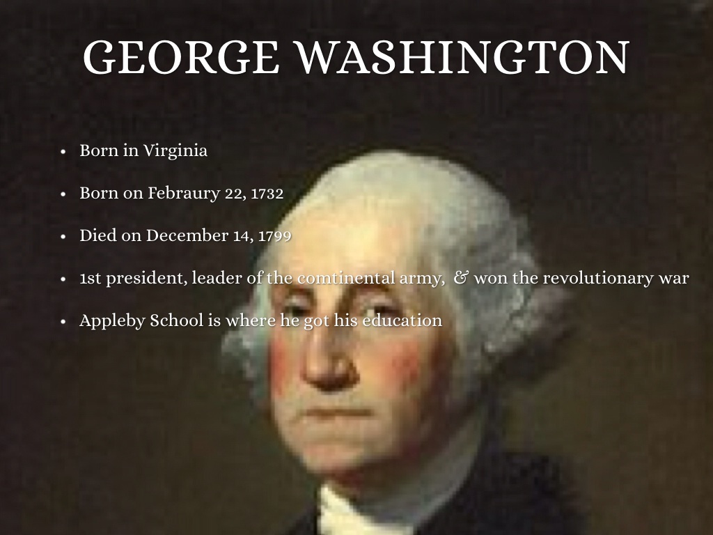 - 1st president, leader of the comtinental army, & won the revolutionary war