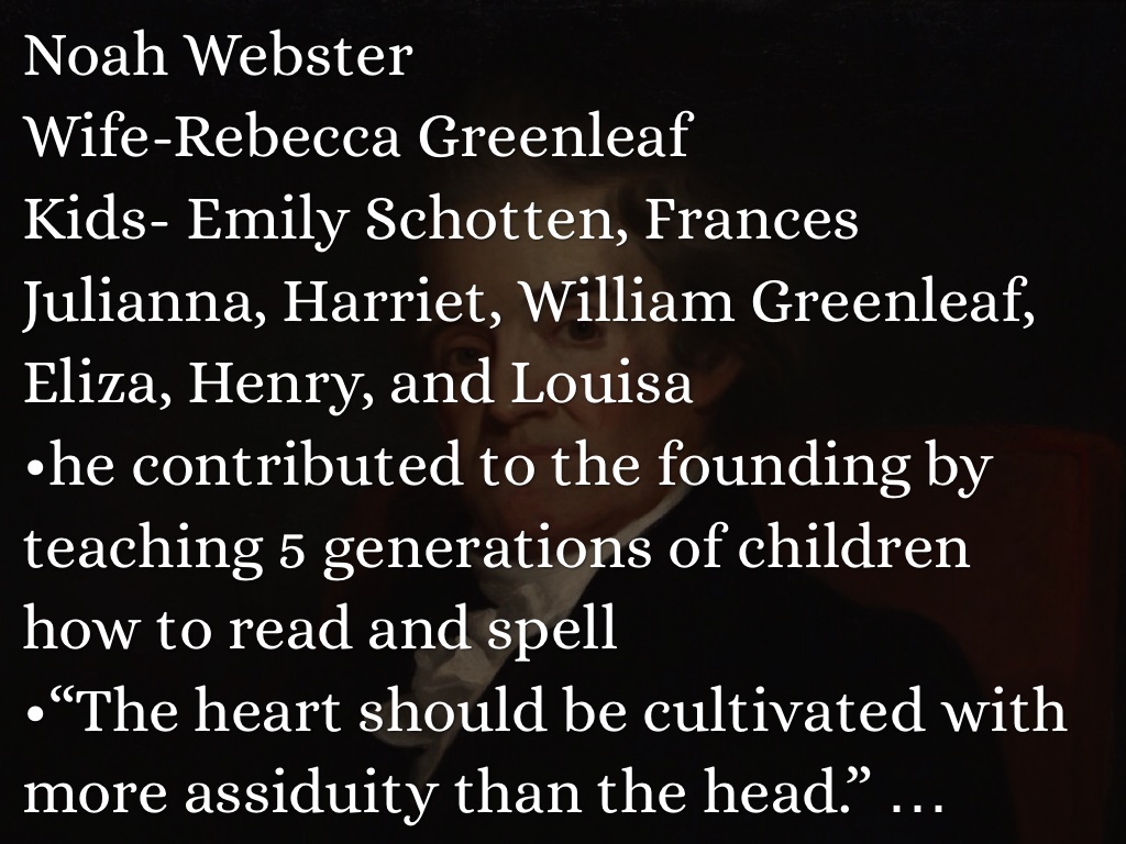 •he contributed to the founding by teaching 5 generations of children how to read and spell