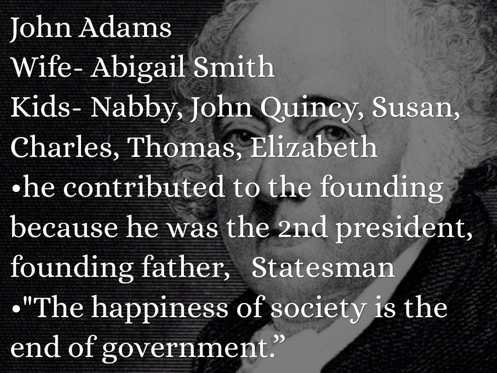 •he contributed to the founding because he was the 2nd president, founding father, Statesman