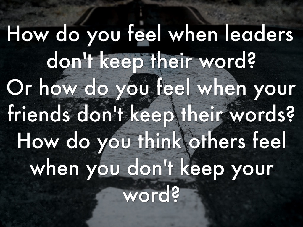 How do you feel when leaders don't keep their word? Or how do you feel when your friends don't keep their words? How do you think others feel when you don't keep your word?