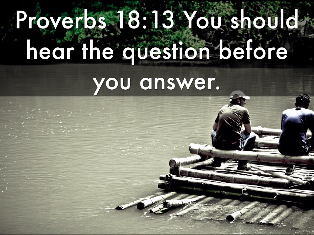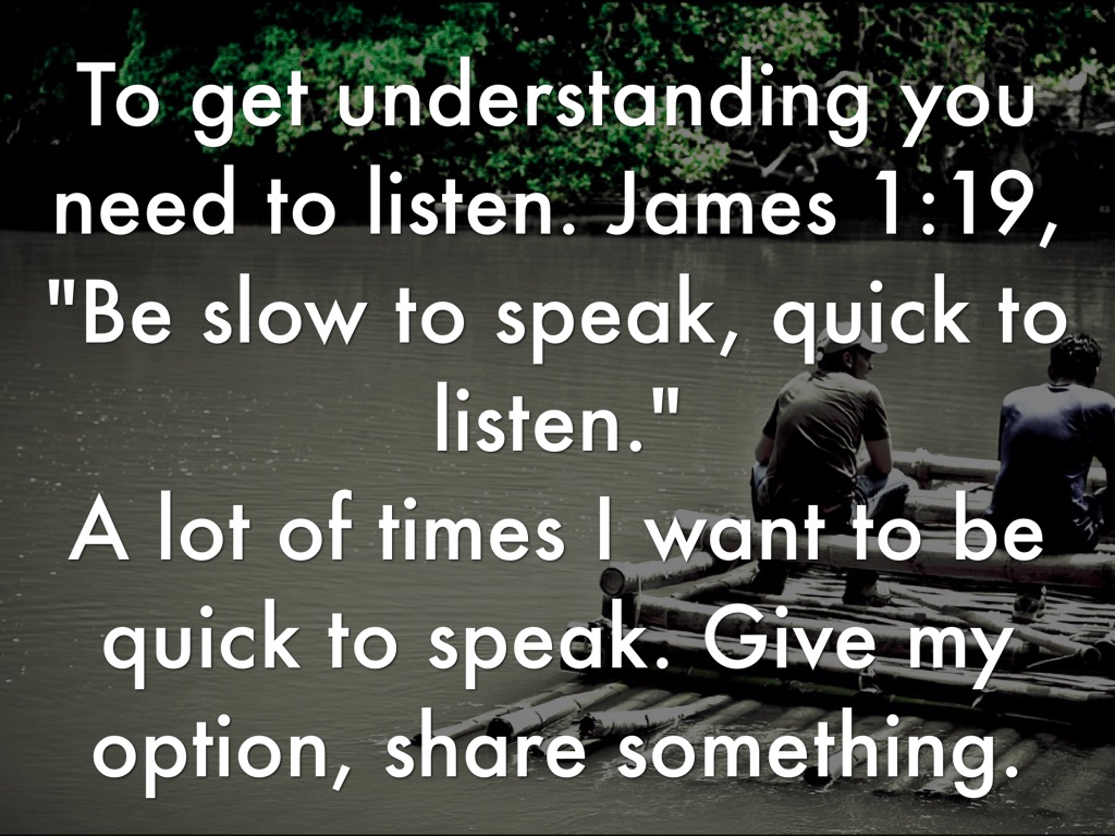 To get understanding you need to listen. James 1:19, "Be slow to speak, quick to listen." A lot of times I want to be quick to speak. Give my option, share something.