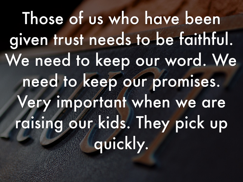 Those of us who have been given trust needs to be faithful. We need to keep our word. We need to keep our promises. Very important when we are raising our kids. They pick up quickly.