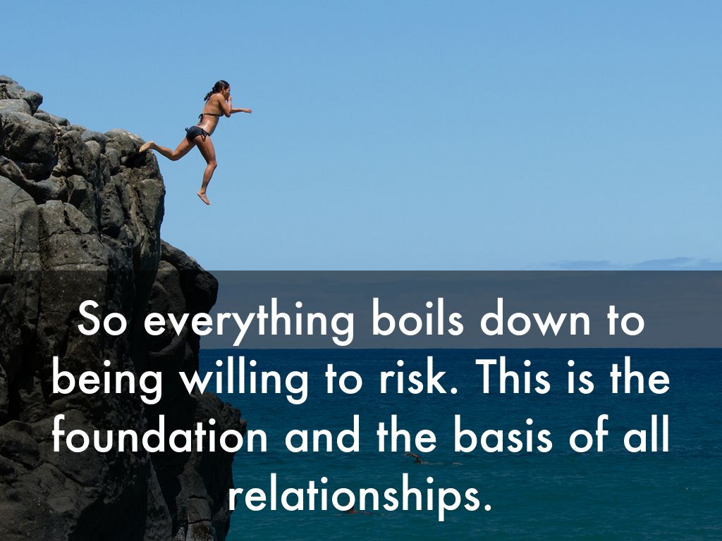 All these pillars of close relationships involve an ingredient called risk. Neither love, nor trust, nor respect, nor understanding will lead to a loving relationship unless both partners are willing to risk being vulnerable.