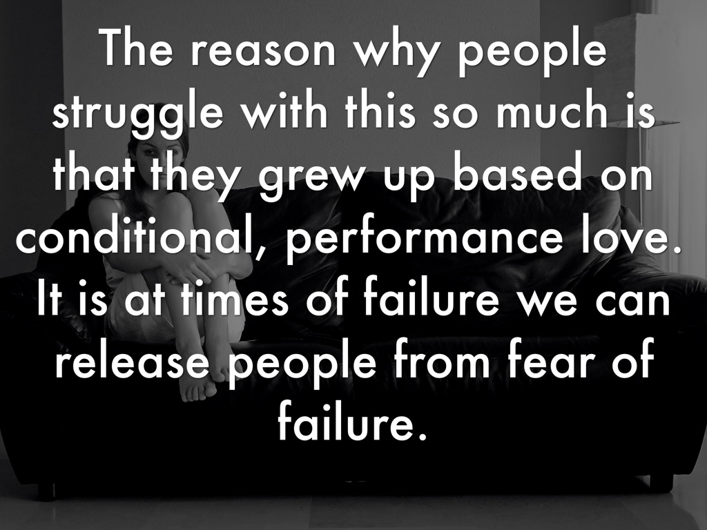The reason why people struggle with this so much is that they grew up based on conditional, performance love. It is at times of failure we can release people from fear of failure.