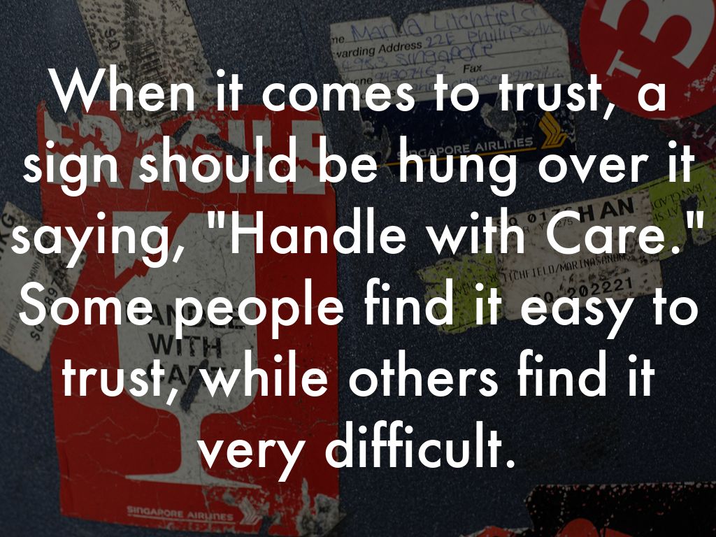 When it comes to trust, a sign should be hung over it saying, "Handle with Care." Some people find it easy to trust, while others find it very difficult.