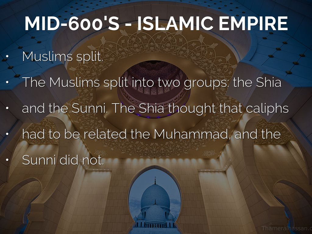 The Muslims split into two groups: the Shia