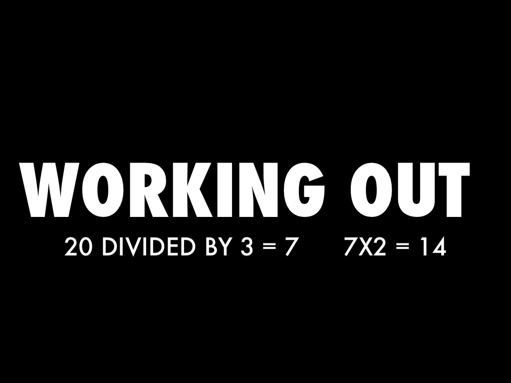 20 DIVIDED BY 3 = 7 7X2 = 14