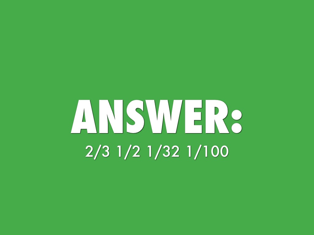 WE WANT TO KNOW WHAT IS BIGGEST? SO I WILL TELL YOU. 1/100 1/32 2/3 1/2