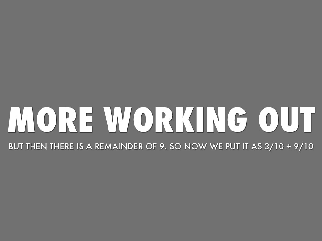 BUT THEN THERE IS A REMAINDER OF 9. SO NOW WE PUT IT AS 3/10 + 9/10
