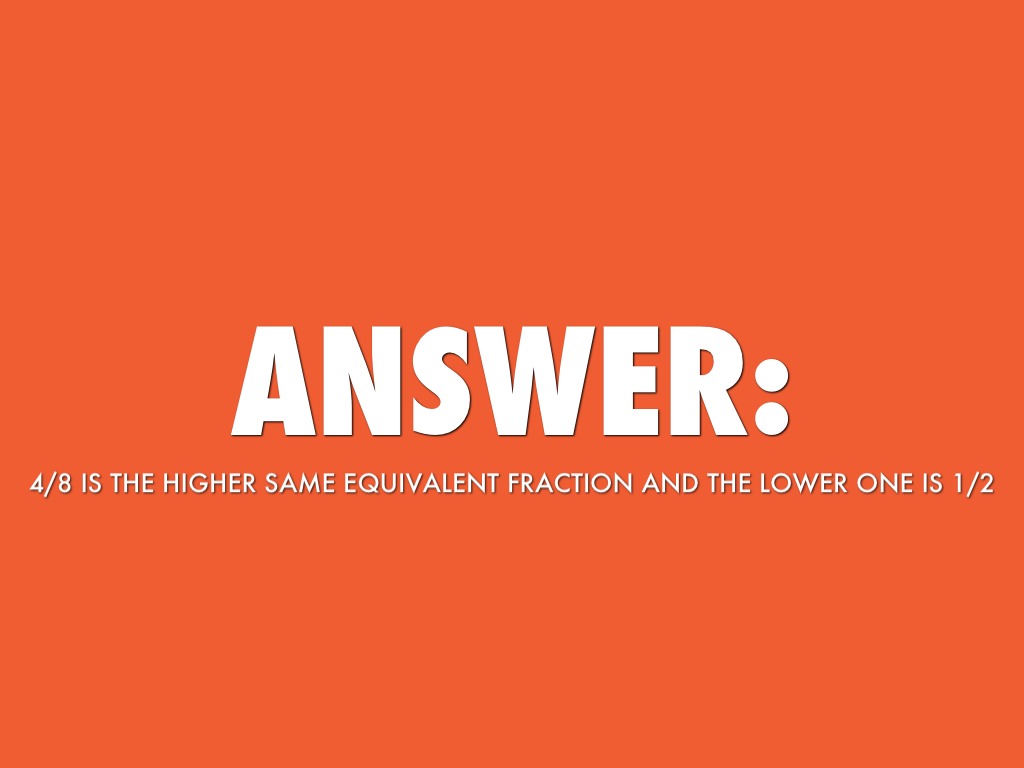 4/8 IS THE HIGHER SAME EQUIVALENT FRACTION AND THE LOWER ONE IS 1/2
