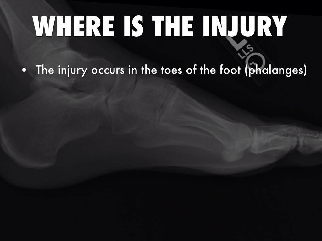 The injury occurs in the toes of the foot (phalanges)