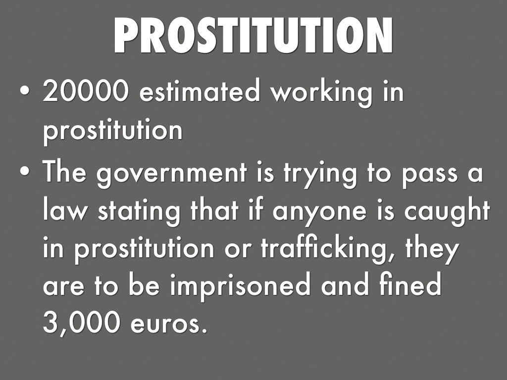 The government is trying to pass a law stating that if anyone is caught in prostitution or trafficking, they are to be imprisoned and fined 3,000 euros.