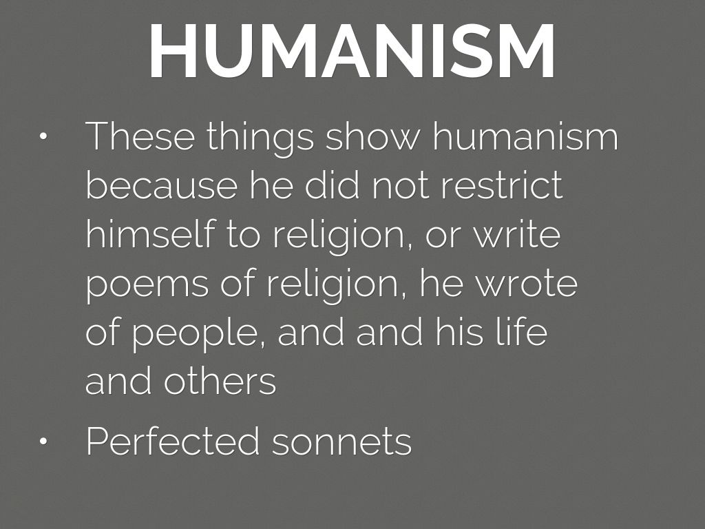 These things show humanism because he did not restrict himself to religion, or write poems of religion, he wrote of people, and and his life and others